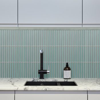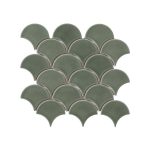 Swimming their way into bathroom and kitchen interiors, these scallop porcelain mosaic tiles will add drama to any design scheme. The mosaic tiles are inspired by the coast with a bright blue and vivid green colour palette. The crackle glaze adds a beautiful iridescent finish to these fish scale shaped tiles.