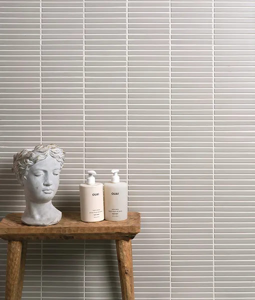 Following the trend for stack bond mosaics, we have introduced our new Candy Cane collection. Available in five delectable pastel tones and in a matt finish. Pair with neutral-toned painted walls or use as a splashback on kitchen walls. Available Autumn 2021.
