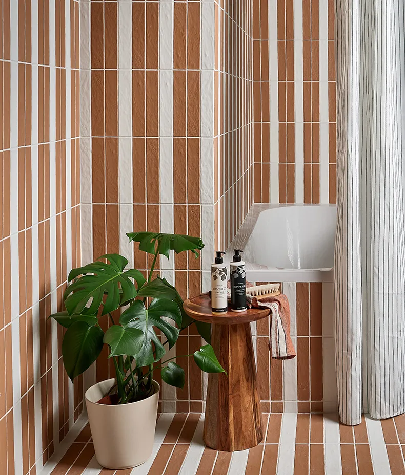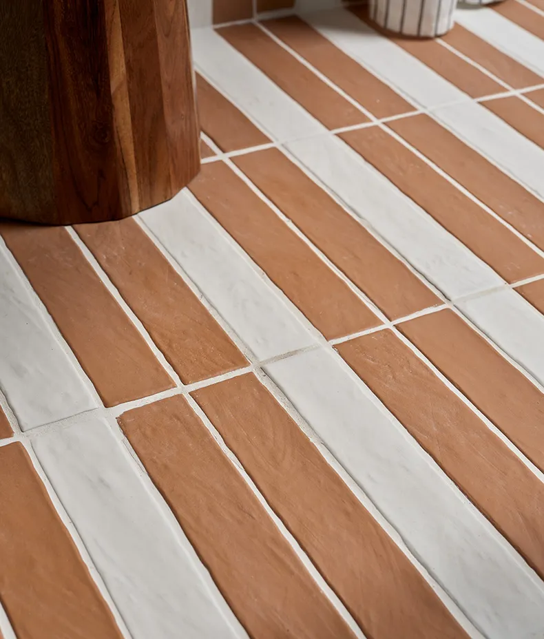 Earthenware is inspired by Italian pottery sold on the streets of villages on the Amalfi Coast. Brought to life in many versatile shades and replicating the texture of pottery through its matt finish, Working individually or paired together, Earthenware tile is a thin rectangle shape and so can be used to create vertical, horizontal or unique patterns across both interior walls and floors.
