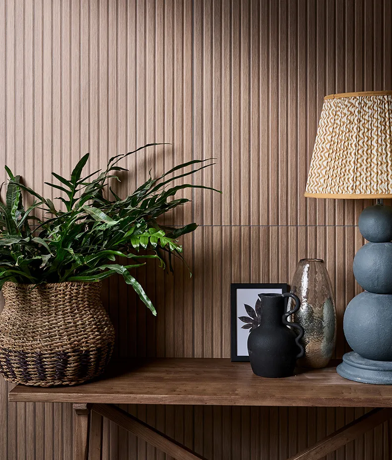 Wood slats go skinny with this exclusive-to-us porcelain tile. A trend-hitter, for sure.