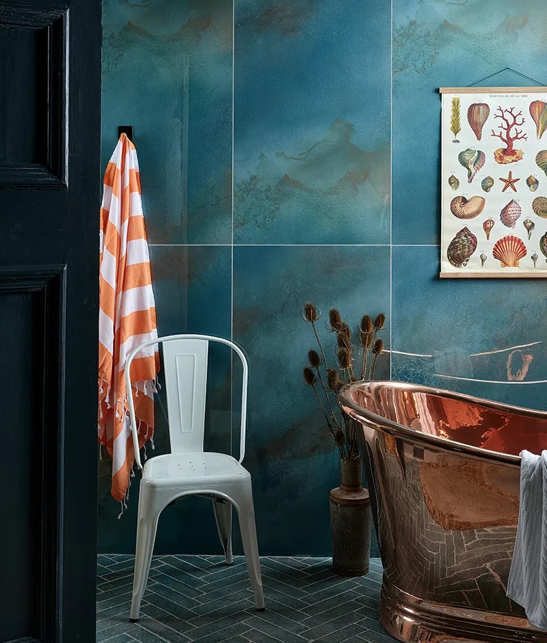 Where water meets tiles. Our Maldives Porcelain range replicates the look of the ocean, with a still, cerulean blue Lagoon colour and a wind-whipped, foamy White. Use on your bathroom walls to create instant escapism.