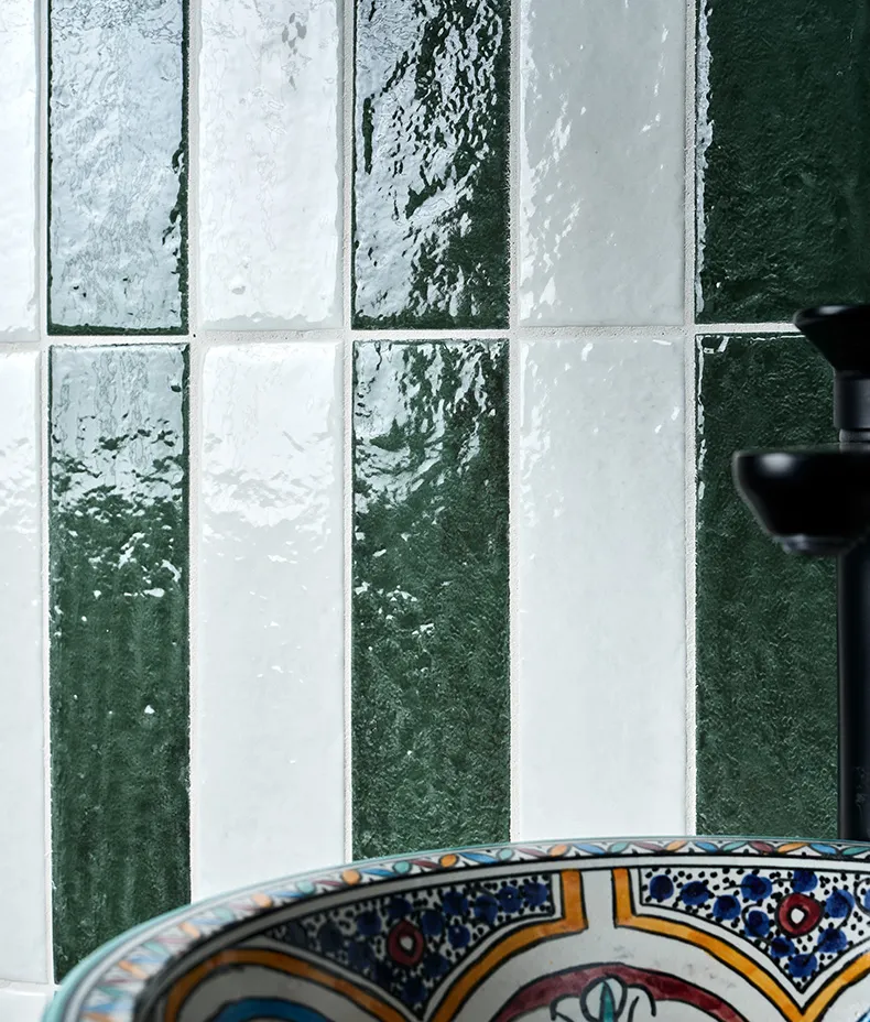A faithful reproduction of our well-known Marlborough Terracotta in a hardy porcelain format, these tiles replicate all the undulations and rustic charm of real terracotta. Create glossy drama with the glazed Bottle Green and Cotton White options, or create an italian-style herringbone floor indoors or out with the Natural.