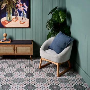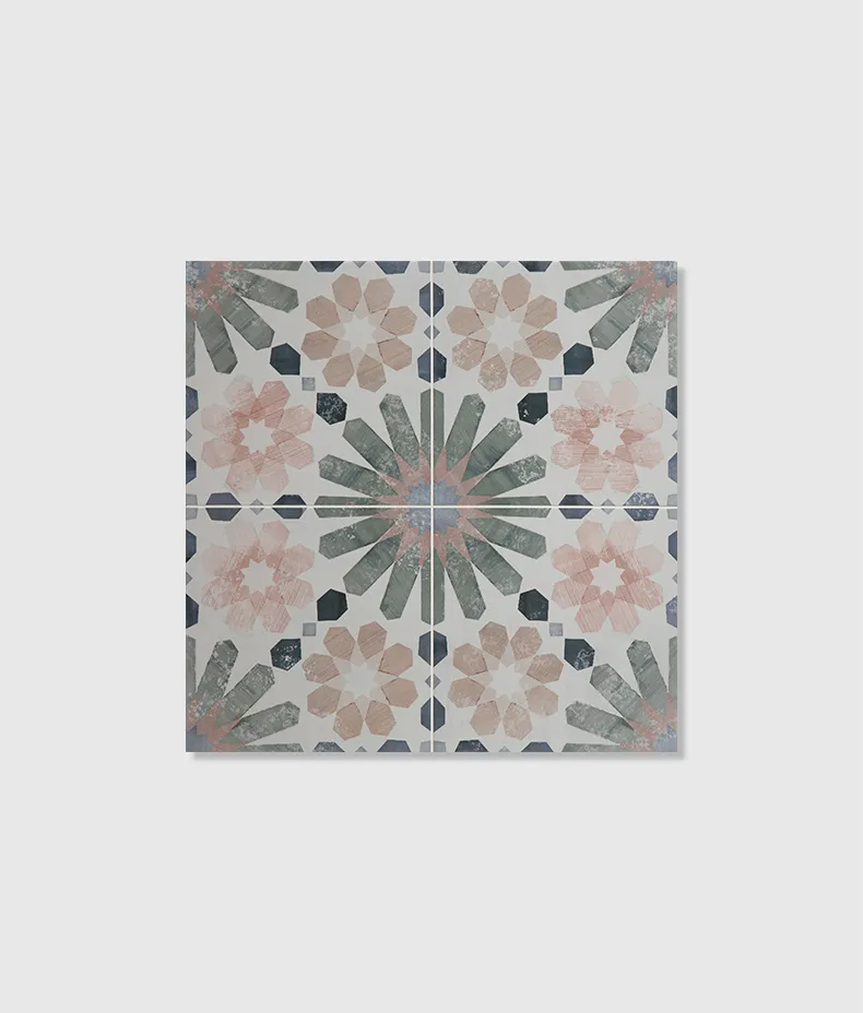 Inspired by traditional Moroccan styles and updated for the modern age, this showstopper will bring gently aged-looking geometric patterns into your space. This tile comes as a larger tile with a prescored grout joint down the centre, designed to give the effect of smaller tiles in a more cost-effective way.