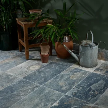 Taking its cue from natural multicoloured slate; these tiles have a vivacious, realistic print and bright contemporary colours; which lend themselves perfectly to the honed finish for a easy to maintain, modern feel. Slip rating is R11