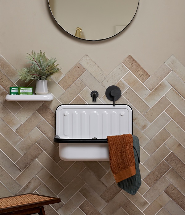 Inspired by a beautiful pottery collection we discovered in Italy, this new porcelain tile is suitable for interior walls and floors as well as exterior walls and is available in both square and brick formats. Reminiscent of artisans who work by hand to create authentic and eclectic designs in their rural workshops, the collection features strong shading and tonal variations for a unique finish. Choose from five shades – Kale, Khaki, Natural, Oatmeal and Ocean – and embrace the irregularities that make Pottery unique.