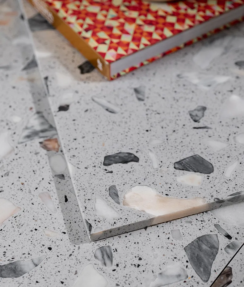 The Italian city of Venice is well known for its terrazzo filled buildings, and we took our inspiration for this range of resin-based real terrazzo tiles from landmarks and areas of the city. Rialto is made from recycled and waste marble materials, making it as sustainable as it is beautiful.