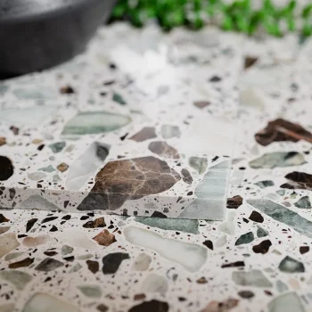 The Italian city of Venice is well known for its terrazzo filled buildings, and we took our inspiration for this range of resin-based real terrazzo tiles from landmarks and areas of the city. Rialto is made from recycled and waste marble materials, making it as sustainable as it is beautiful.