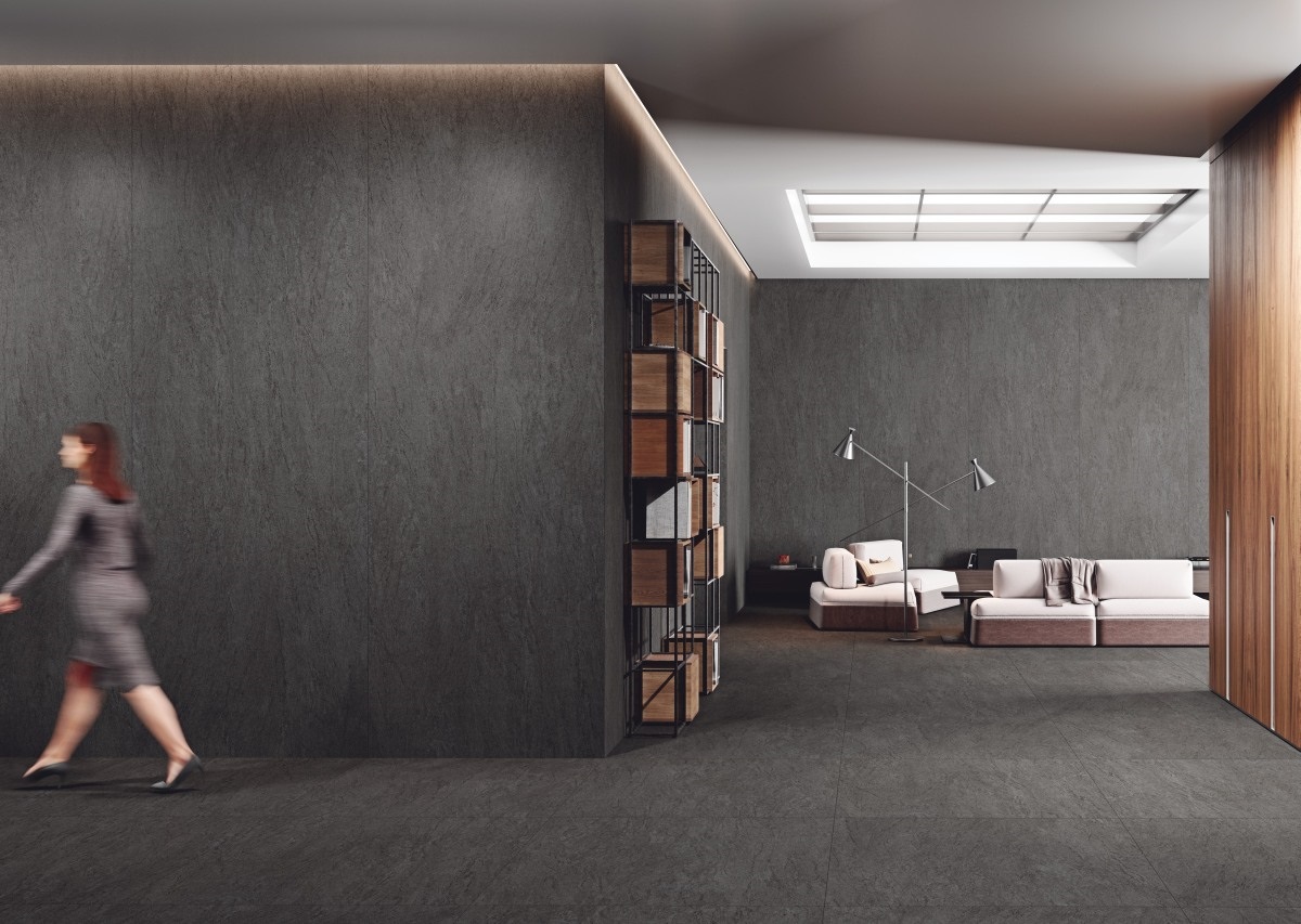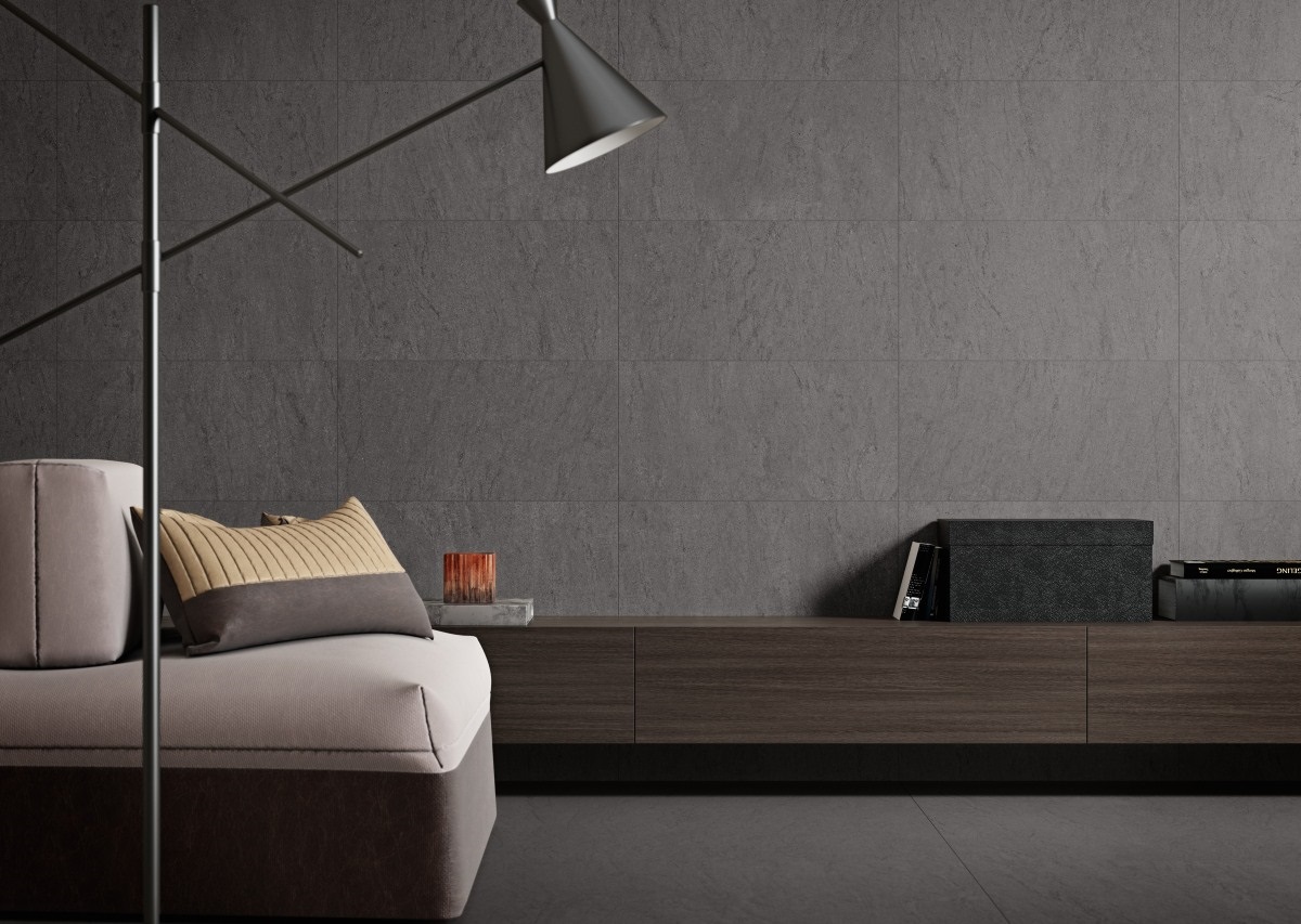 Basaltina, developed in technical porcelain and inspired by basalt volcanic rock, is another of Grespania’s additions in the new 120x120cm large-format porcelain tile collection. A restrained and elegant series available in three tones