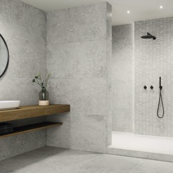 Grespania has launched the new range Elba, a tile in a stone finish with marble references. Its neutral colors -Grey, Taupe, and White- and its wide range of formats – 120x60cm, 60x60cm and 30x60cm – allows architects and interior designers to create soft and timeless spaces. The collection can be combined with Livorno and Bolsena mosaics, in geometric designs.