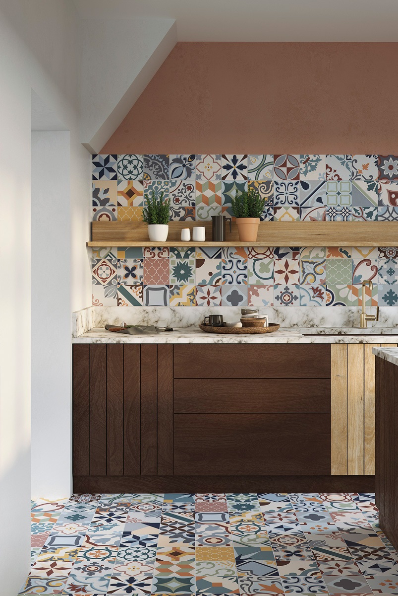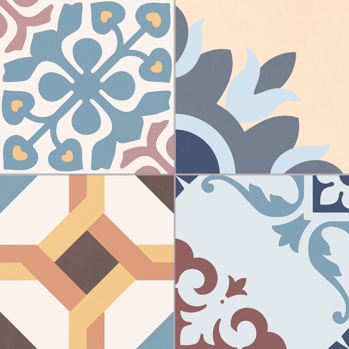A collection inspired by the return to popularity of hand-crafted cement tiles as decorative elements. Our Heritage series has evolved into a set of large-sized patterns of different styles with a common running thread; the passion for tradition, geometry and colour that create a free and flexible universe of infinite combinations. In a beautiful Mix tone featuring vibrant ochres, greens and oranges, the freshness of the Blue with a deep palette of blues and a serene Black with a range of neutral shades.