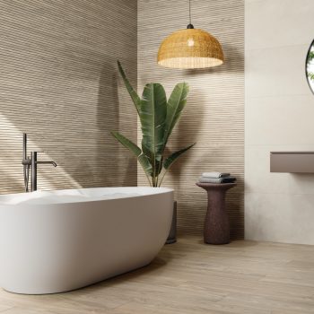 Grespania gets on board with the wood panelling trend by presenting the white body Malmo model in 45×120 cm format, which recreates the look of wooden slats. The collection is available in cypress, ash and oak tones, coordinating with the Estocolmo porcelain series. Moreover, it is an ideal complement to any other series, since it can be installed on an entire wall, or just a section of it to create baseboards, headboards or cosy nooks.