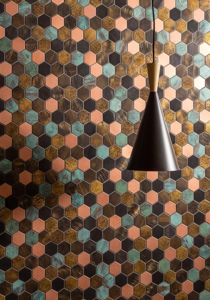 Rich metallics of bronzes and coppers work their magic in kitchens and bathrooms.