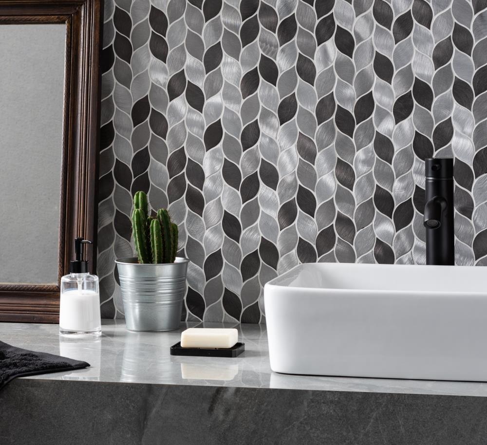 Original Style Leaf grey and Silver Mosaic 300x300mm